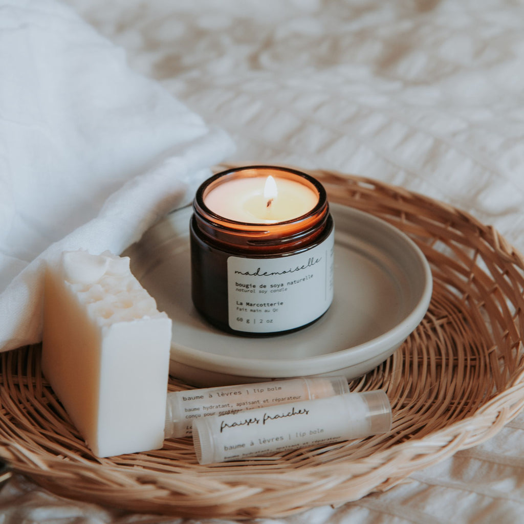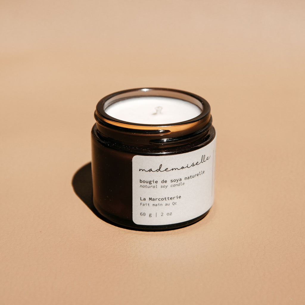 Introducing our 2 oz Mademoiselle Candle, made from 100% soy wax for a clean and eco-friendly burn. Scented exclusively with essential oils of birch sweet, lavender, and spearmint, this candle brings a touch of natural elegance to any space.