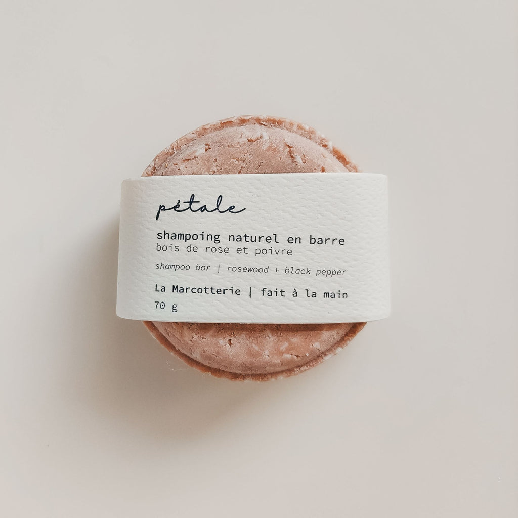 Discover our Petal shampoo bar - delicately scented with the harmonious blend of rosewood and black pepper essential oils, making each wash a sensorial experience. This bar is meticulously crafted to provide a balanced formula for those who value both effectiveness and environmental consciousness.